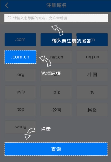 注册域名,域名允许带后缀,也允许输入中文。