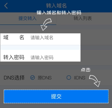 3.转入域名页面