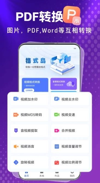 格式岛是一款功能十分强大的格式转换软件,它能帮你一键转换PDF、Word等各类办公文件,除此之外,它还具备图片格式转换功能,PNG、JPG、WEBP、JPEG等格式都能通过它实现互相转换。你以为这就结束了吗?当然不是,它还支持视频与音频的格式转换,可以说日常文件格式的相互转换,绝大部分都能被它包揽。