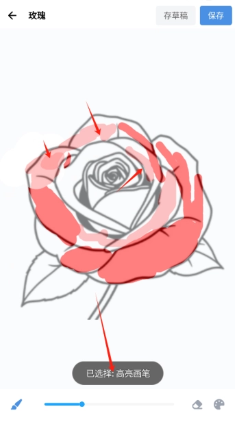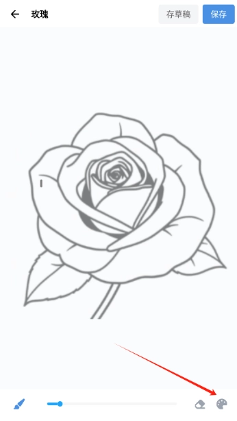 5、选好画笔后,按照自己的想法在画作上滑动就能完成涂色,点击右上角的按钮可以保存作品。