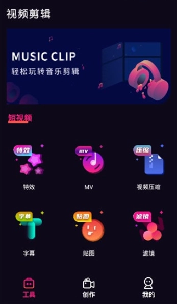 3、接着进入软件的“工具”板块,这里面包含特效、mv、视频压缩、字幕、贴图、滤镜等多种工具,用户可依据自身需求挑选使用。
