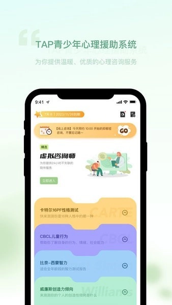 - 智能匹配系统:依据用户的测试结果,自动为其推荐适配度最高的咨询师以及相应的调节方案。