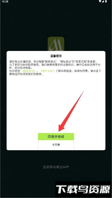 1、首次打开应用时,请仔细阅读平台的服务条款与隐私政策,确认内容无误后,点击“同意并继续”按钮进入后续操作步骤。