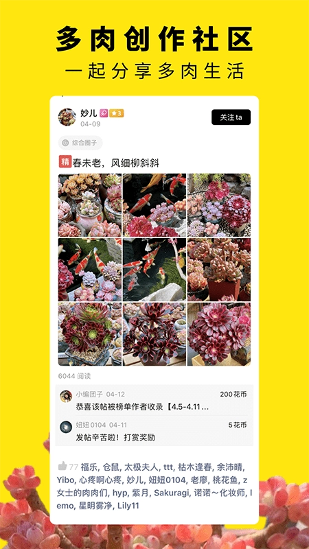 这里聚集了许多多肉植物爱好者,大家既能交流种植心得,也能分享生活点滴;还有智能拍照功能,能轻松记录下植物的生长变化。