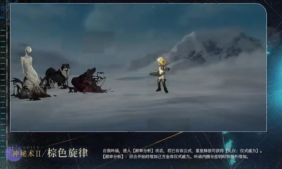 第二种神秘术名为棕色旋律,施展此术能够让使用者进入“频率分析”状态,不仅能为队友强化大招造成的伤害,还可提升整个团队的爆发能力。