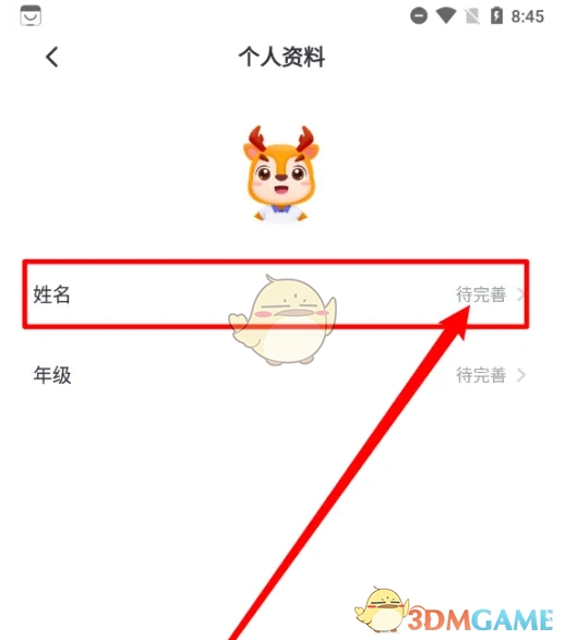 2、接下来在个人资料中点击“姓名”。