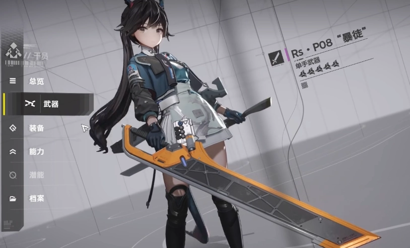 陈千语所使用的武器属于单手武器范畴,其专属武器称作Rs·P08“暴徒”。此武器呈现出唐刀的造型,在武器天赋与属性方面均得到了显著提升。一旦使用这把武器,能够径直将对手一招制敌。