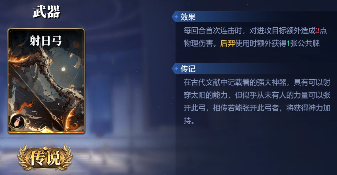 武器选择携带射日弓,非常优质的伤害武器,可以大大提升哈迪斯的输出能力。