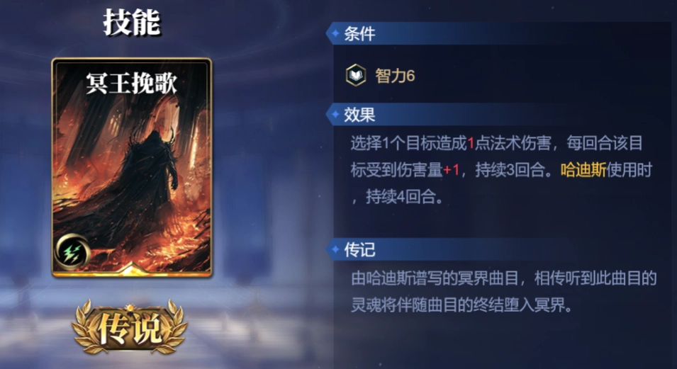 与之类似的还有“冥王挽歌”这张卡,当回合打出时造成1点法术伤害,伤害来源为奈芙蒂斯,而在此之后每回合的法术伤害,伤害来源则变为对手自身。