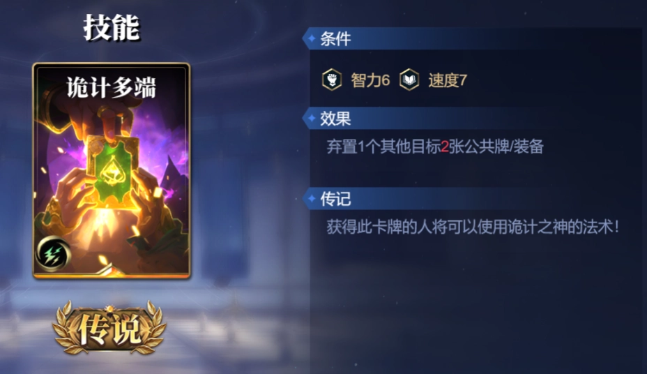 力量之剑在进攻得手时,能够提升两点力量属性。影步长袍与速度宝石皆用于提升速度属性,而三重神力更是厉害,能全方位提升两点三维属性。这四张卡牌能助力后羿尽可能多地施展【绝日归尘】。至于剩余的卡组位置,我们挑选携带了护甲、灵魂汲取以及诡计多端。护甲和灵魂汲取旨在增强自身容错率,诡计多端则用于削减敌方手牌。