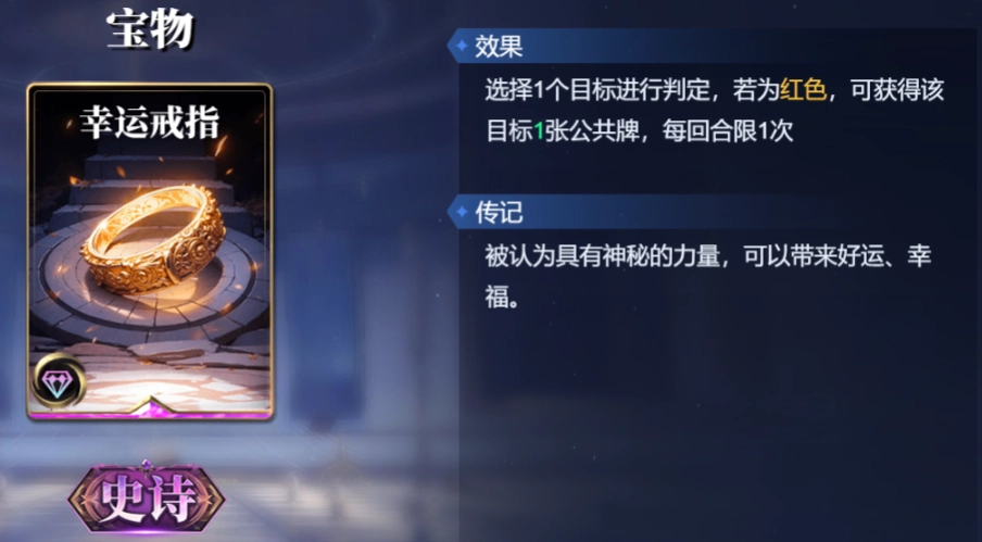 宝物选择幸运戒指,每回合可以用来尝试偷取对方的公共牌。