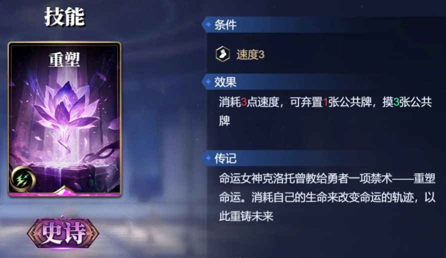 重塑可以消耗阿喀琉斯不需要的速度属性来换取公共牌,是非常好的过牌手段。