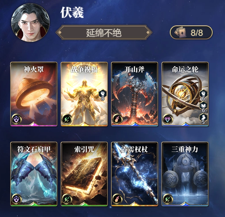 伏羲的技能“律法演化”与构筑卡战神祝福堪称绝妙搭配。伏羲具备取之不尽的公共牌,借助战神祝福,能够轻松实现高段数连击。当装备“霹雳权杖”后,更是能够将连击伤害提升至最大程度。