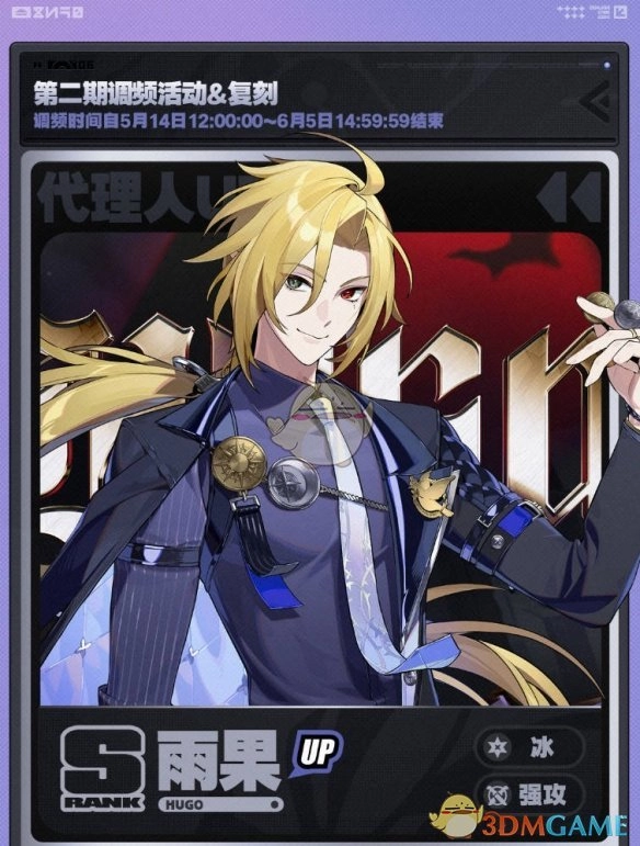1、雨果是在绝区零主线1.7版本下半上线的角色。1.7版本下半卡池会于5月14日12:00:00开启,一直持续到6月5日14:59:59结束。