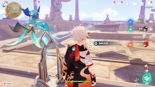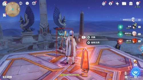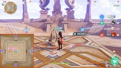 6. 通过四叶印的助力,飞到位于中间位置的下层平台,接着对平台中间的导光机关进行调整,使其射向西方的机关处。