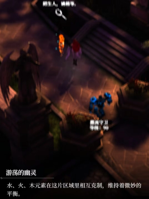刚进入地图时碰到的幽魂就已经告知我们,此地的元素人存在属性相克的情况。只是我一开始并未留意,地图中有个高级精英怪是水属性。建议你最后攻打木守卫,或者打完木守卫后就去挑战高级水元素。当然,要是你的战力足够高,也能强行攻打。