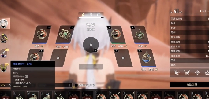 品质可分为绿色、蓝色、紫色以及金色,品质越高,所对应的属性也就越强。通过升级能够解锁更多的词条属性,像增加技能耐久度、提升威力,以及降低能耗等。系统具备自动装配功能,不过建议手动进行装备,这样能够依据角色技能来定制效果。比如说赛琪,主要选择技能耐久以及最大神智魔之楔,如此一来就能有效达成永续飞行,从而带来更为理想的效果。