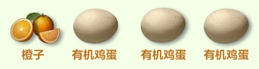 一个橙子,还有三个有机鸡蛋。