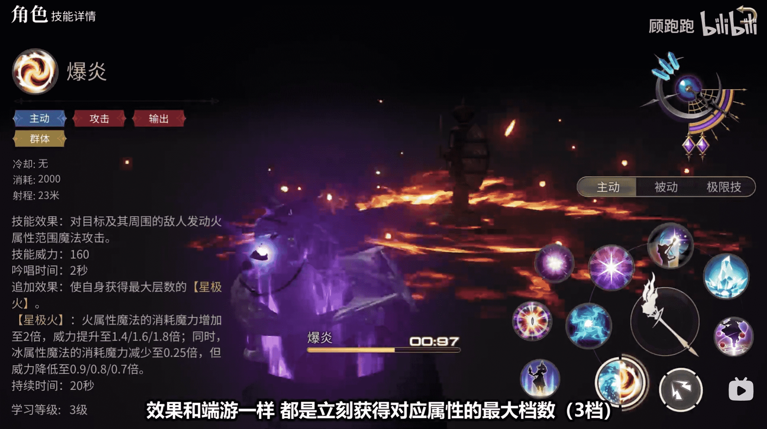 在端游里,获取3档“灵极冰”的【冰封】(简称为冰3)以及获取3档“星极火”的【爆炎】(简称为火3)这两个操作,在手游中被整合到了同一个键位。向左滑动该键位可触发冰3,向右滑动则触发火3。其效果与端游一致,均能即刻获取对应属性的最大档数,也就是3档。此外,手游里冰火状态的持续时间提升至了20秒。