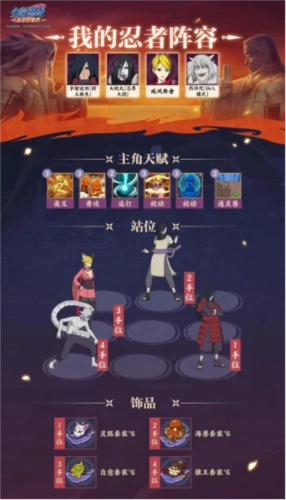 以下为你重新梳理表述逻辑,使语句更为流畅自然: 上述推荐阵容的站位及饰品搭配仅作参考,你可依据自身理解与实际状况灵活调整。当前,大蛇丸[忍界大战]这个角色具备多种强大能力。其咒术能够助力养成己方小队;蛇之眼可以有效压制对方的多次普攻;咒缚之印则能让对方行动失败;召唤出的历代火影还能为小队增添助力。整体而言,大蛇丸[忍界大战]主要依靠自身辅助能力强化整个小队。期待在未来,大蛇丸[忍界大战]能衍生出更多精彩的搭配!
