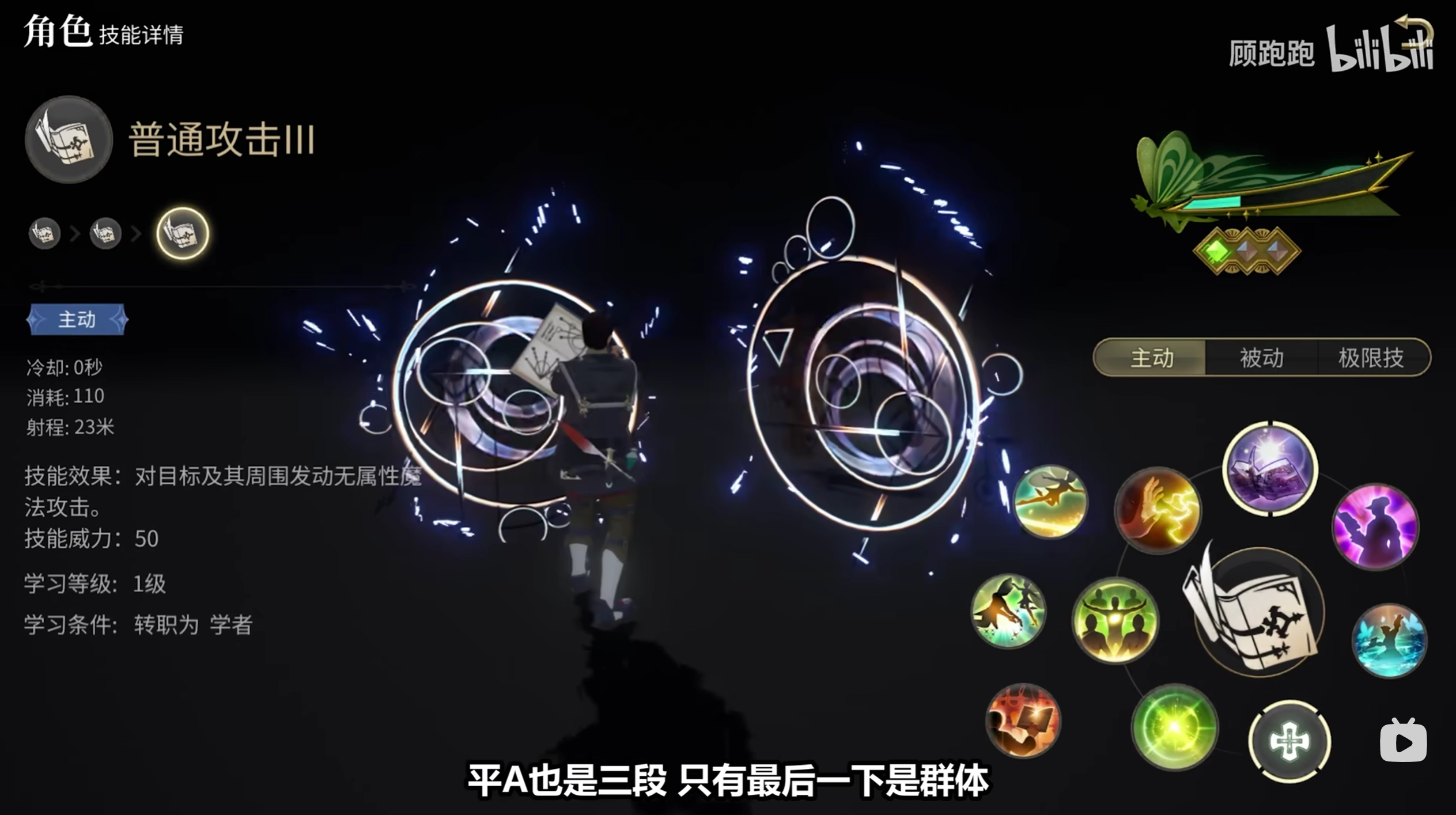 【疾速法】,大家通常叫它跑快快。它能让自身移动速度提升30%,技能冷却时间仅10秒,还具备2层充能。这个技能在一定程度上强化了学者的机动性,毕竟在手游的战斗过程中没办法开启疾跑。