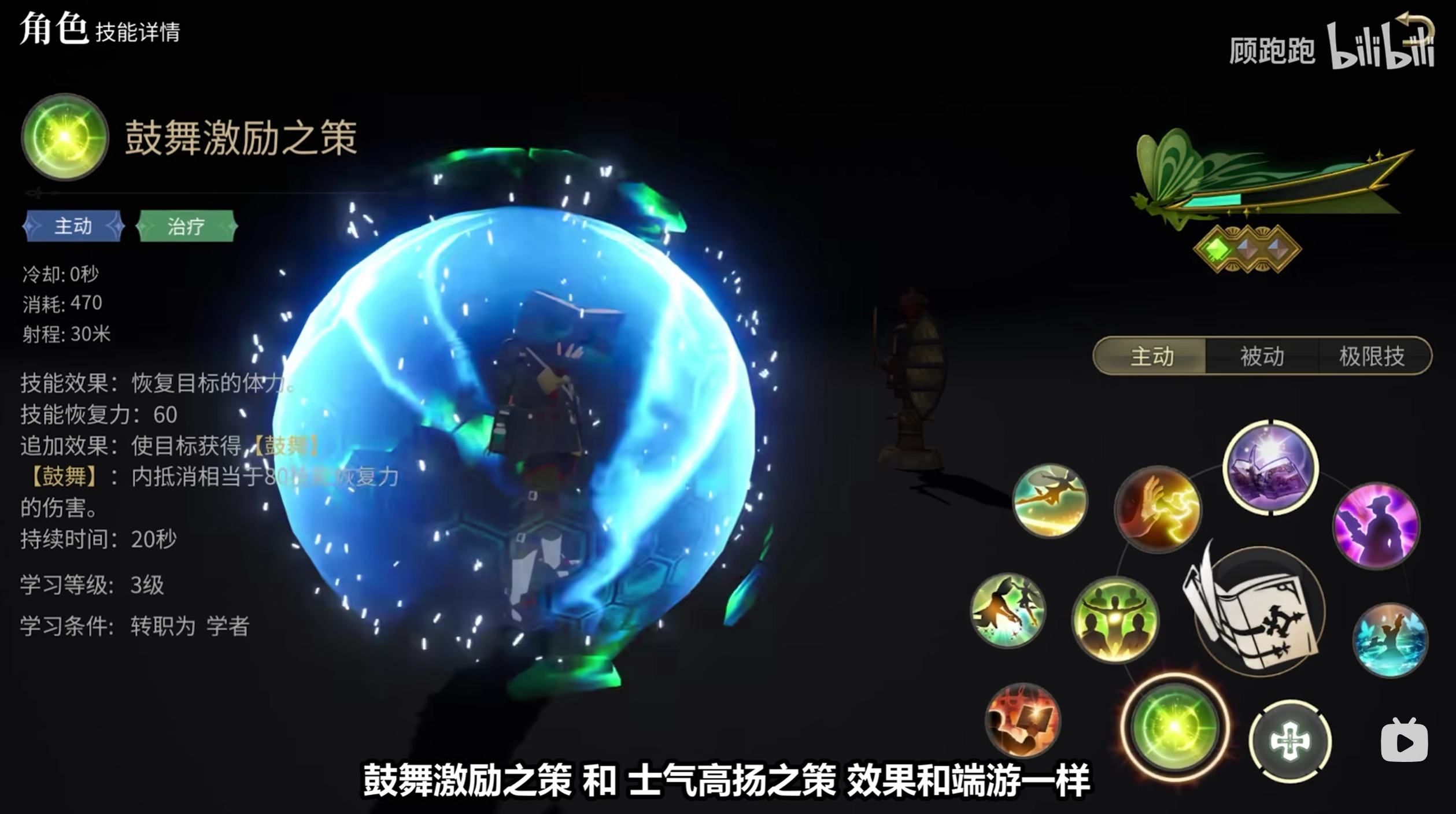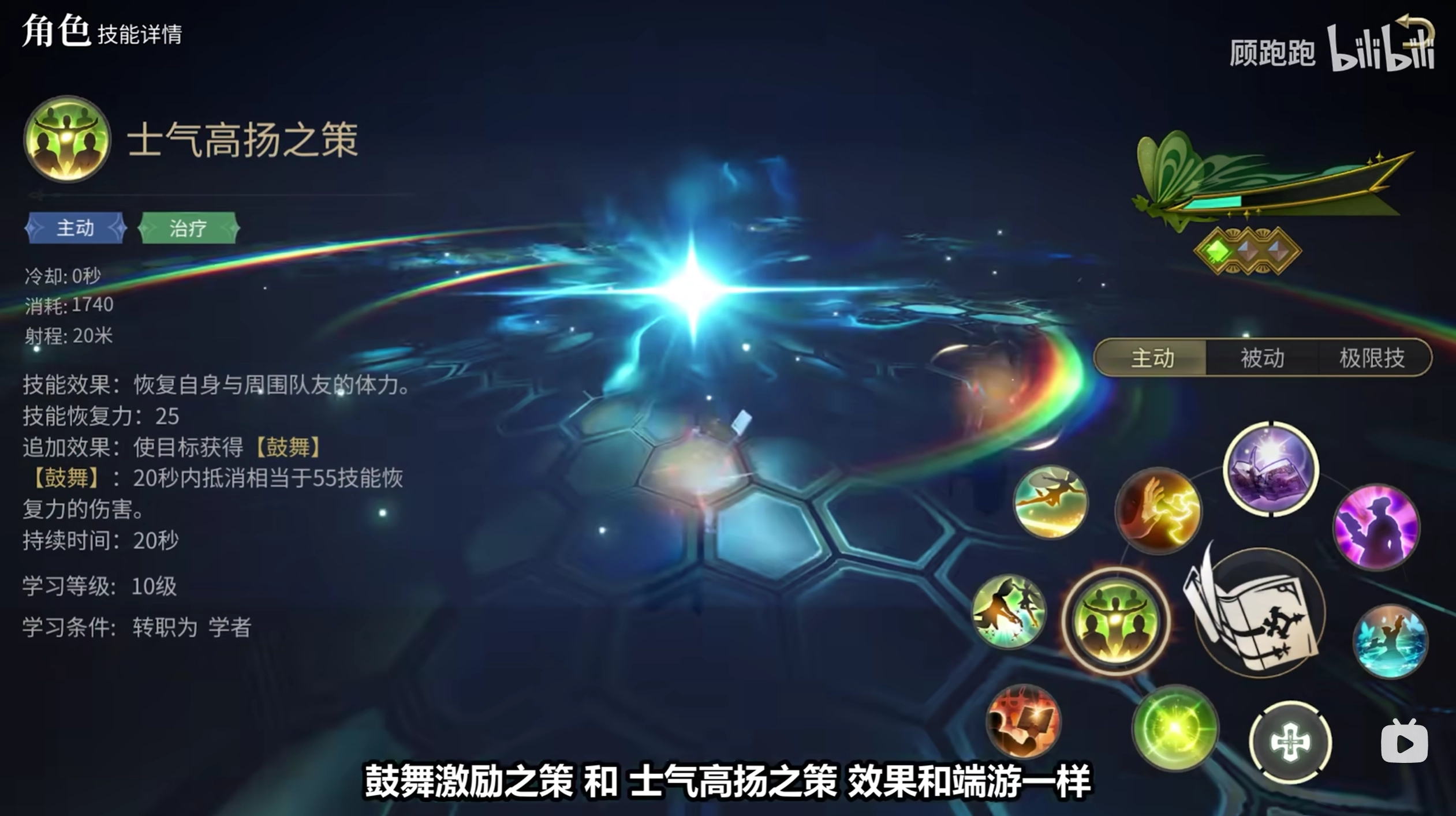 【鼓舞激励之策】和【士气高扬之策】,效果和端游一样,都是在加血的同时给目标附加血盾,前者为“单体”,后者为“群体”。