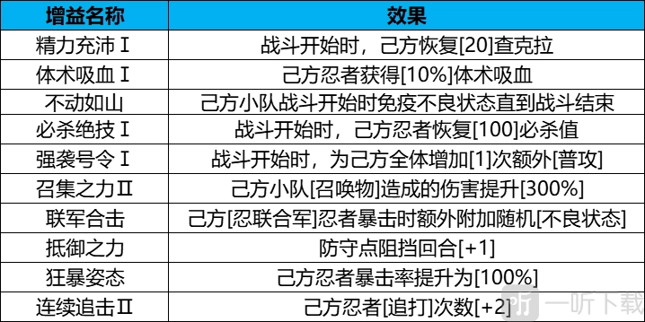 4、应依据不同忍者与阵容,挑选适配的增益效果,具体以自身所拥有的忍者为标准。