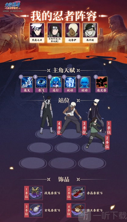 1、在敌人入侵的路线上,能够布置3个阵容用以防守,并且这3个阵容中的主角与忍者均不可重复。