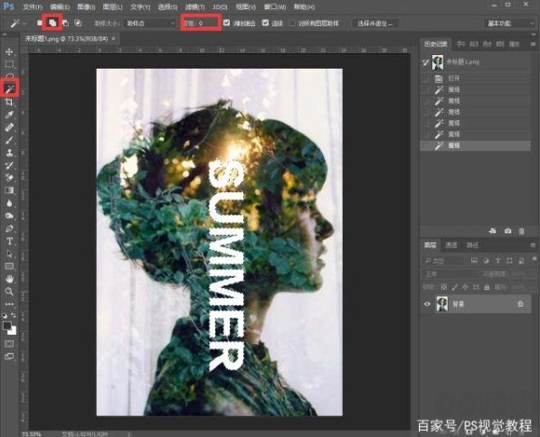 2. 随后,我们选取魔棒工具,将容差设置为0,接着选中图片中文字的部分。由于这部分色差较大,所以相对容易选中。