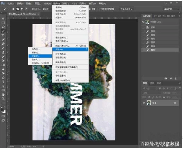3.点击选择——修改——扩展,扩展两个像素