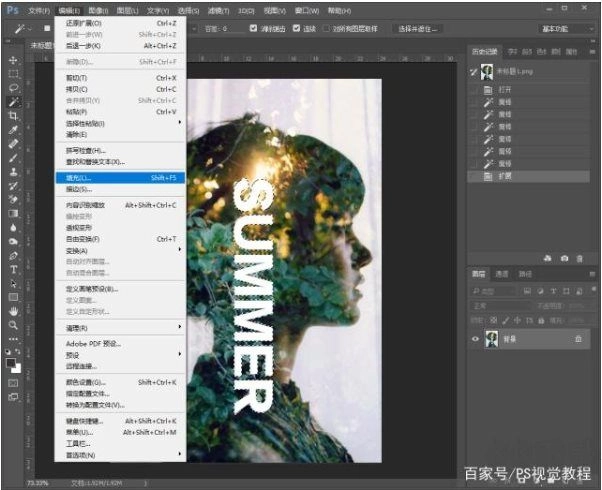 4.执行编辑——填充选项;