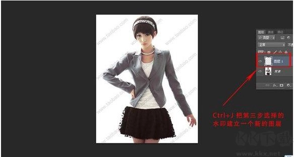 4、通过按下快捷键Ctrl+J,为第三步所选择的水印创建一个新的图层。