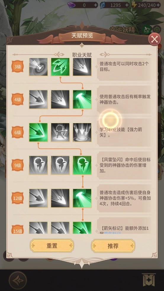 职业天赋路线:由于神器流的角色仅限弓手,只用展示弓手的天赋点取路线就行