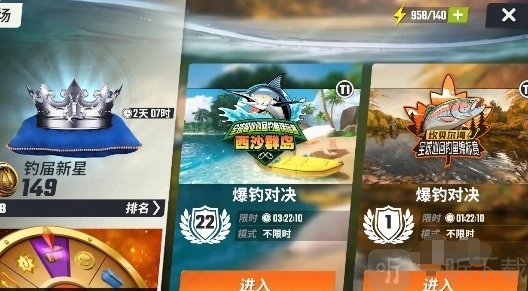 3、全新渔场:解锁新地图,踏入新渔场,右下角赠送蓝色钓竿与50点体力。