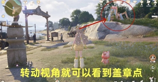 传送至【捕虫小屋】锚点后,把视角往右边转动就能找到盖章点了。