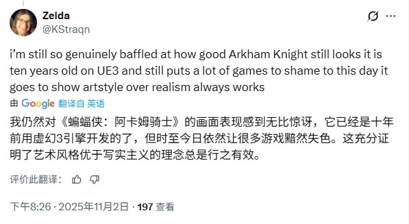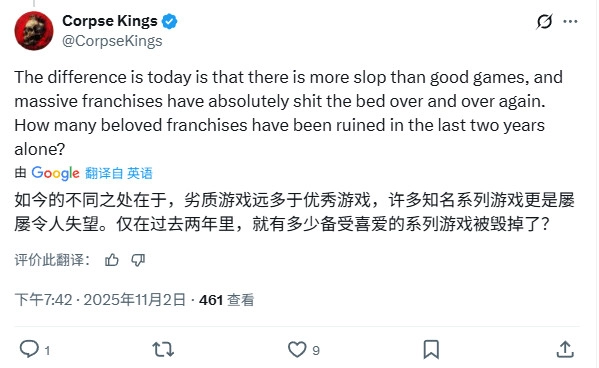 针对这一观点,推主@NikTekOfficial展开了反驳。他一上来便直截了当地指出,老游戏本身就是经典之作。