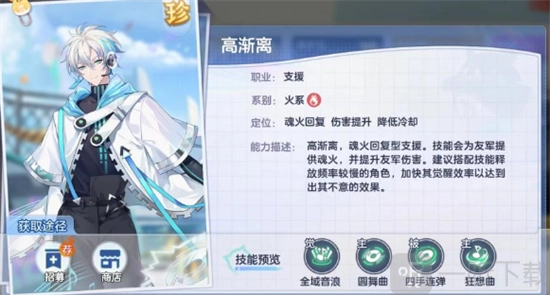 3、高渐离身为辅助型角色,可为团队赋予增伤与魂火效果,朱雀与昆仑能提升队伍整体伤害与存活率。