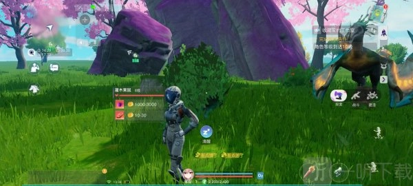 在那一片粉色巨石之中,蓝翎翼龙与灌木果鼠隐匿其中。值得注意的是,灌木果鼠在遭受攻击时,并不会反击,只会朝着与我们相反的方向逃窜。所以,我们只需小心避开蓝翎翼龙,然后追着灌木果鼠进行击杀,如此一来,便会掉落价值至少1000的紫晶树莓。