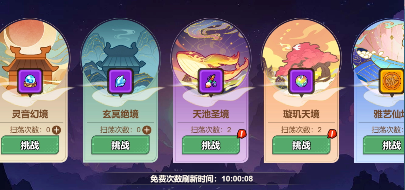 6. 游历每天等到晚上战力提升完毕后再打,打不过了再扫荡最高关卡,我是124都买额外次数