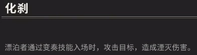 处于该状态时,普通攻击会被强化普攻所替代,能够展开最多5段的连续攻击,进而造成湮灭伤害。与此同时,重击也会被强化重击替代,在施放强化重击后,若短按普攻,将会施放出重击鸣刃来攻击目标,同样造成湮灭伤害,且此次伤害等同于重击伤害。在施放出重击鸣刃后,再次短按普攻,将会施放出第3段强化普攻去攻击目标,同样造成湮灭伤害。另外,共鸣技能行刃会被共鸣技能破命替换,以化音为刃的方式攻击目标,造成湮灭伤害。