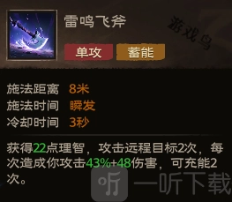 效果:获得22点理智,攻击远程目标2次,每次造成你攻击43%+48伤害,可充能2次。