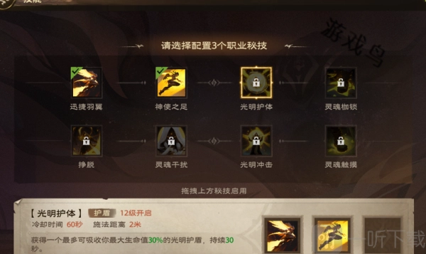 效果:获得一个最多可以吸收你最大生命值30%的光明护盾,持续30秒。