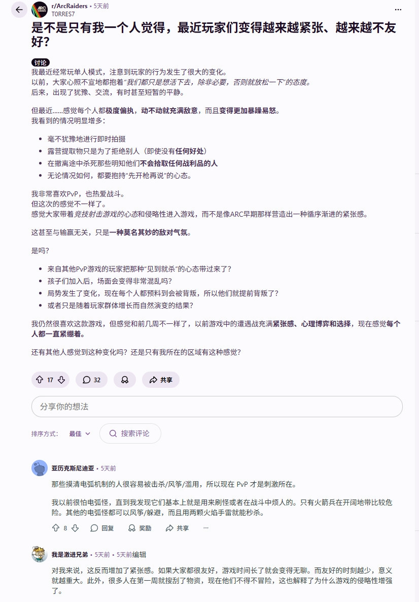 与此同时,11月10日,海外论坛Reddit上有部分玩家发帖吐槽,称近期游戏里的玩家变得“愈发急躁且好斗”。