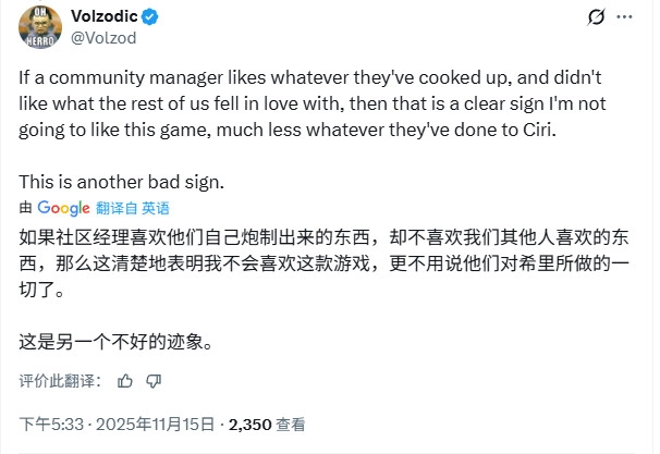 这番言论发表后,在玩家群体里引发了不小的争议。Reddit上有网友提出疑问,想知道这位社区经理究竟有没有读过《巫师》的小说原著。