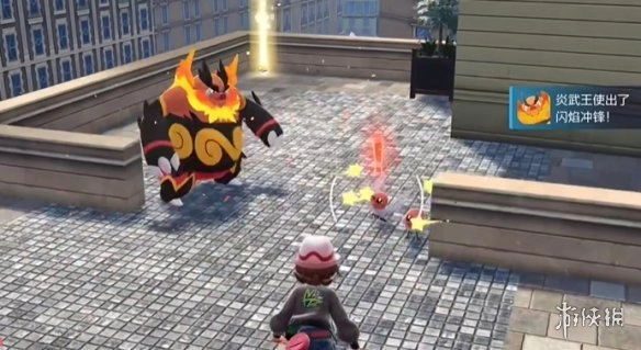 4、上去后径直往前走,接着右转穿过草桥,前面有树根挡住了去路,你可以让宝可梦施展火系技能把它烧掉。