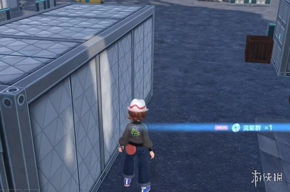 4、玩家能看到铁箱旁有个闪着金光的宝可梦球,将其捡起就能得到流星群的招式学习器。