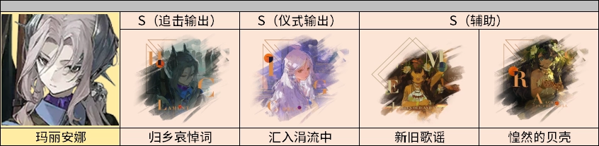 主用归乡哀悼词或者汇入涓流中都可以,辅助队友的话可以选新旧歌谣或惶然的贝壳,当然也能随便带个生命心相(毕竟作为辅助角色,目前没有特别适配玛丽安娜的专属心相)