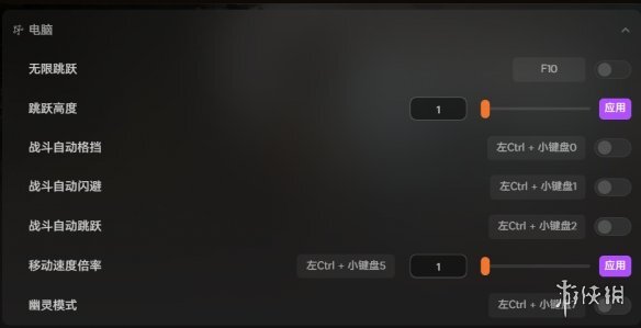 在战斗场景中比较实用的功能包括:无限跳跃、可调节的跳跃高度、战斗时的自动格挡与闪避机制,还有跳跃及移动速度的倍率设置、幽灵模式等。