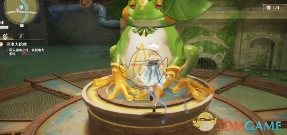 4、与青蛙交谈完毕后,青蛙举起荷叶,助力我们跳上去,进而触发后续的副本玩法。