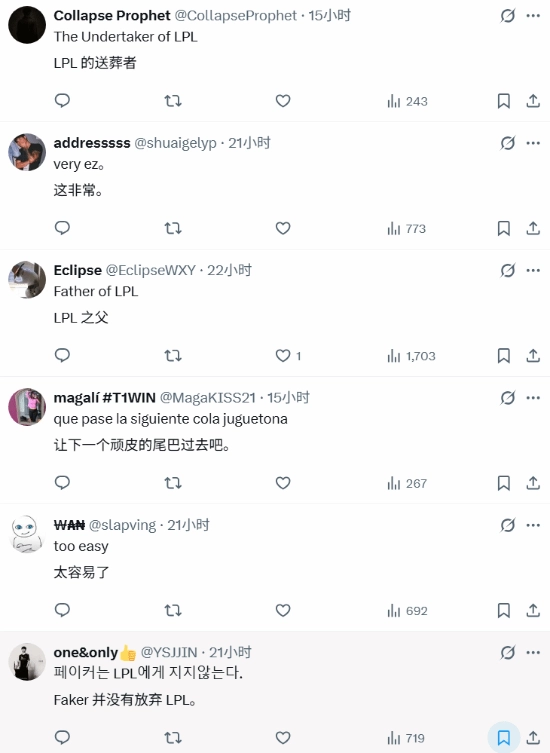 赛后《英雄联盟》X官方账号发文称:The LPL Slayers(LPL杀手)。